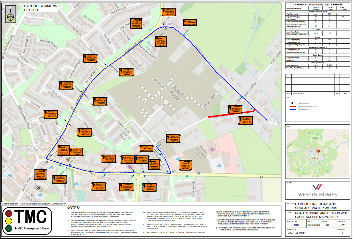 Diversionary routes will be clearly signposted, as agreed with the Council and An Garda Síochána. Emergency access and restricted local access will be maintained.