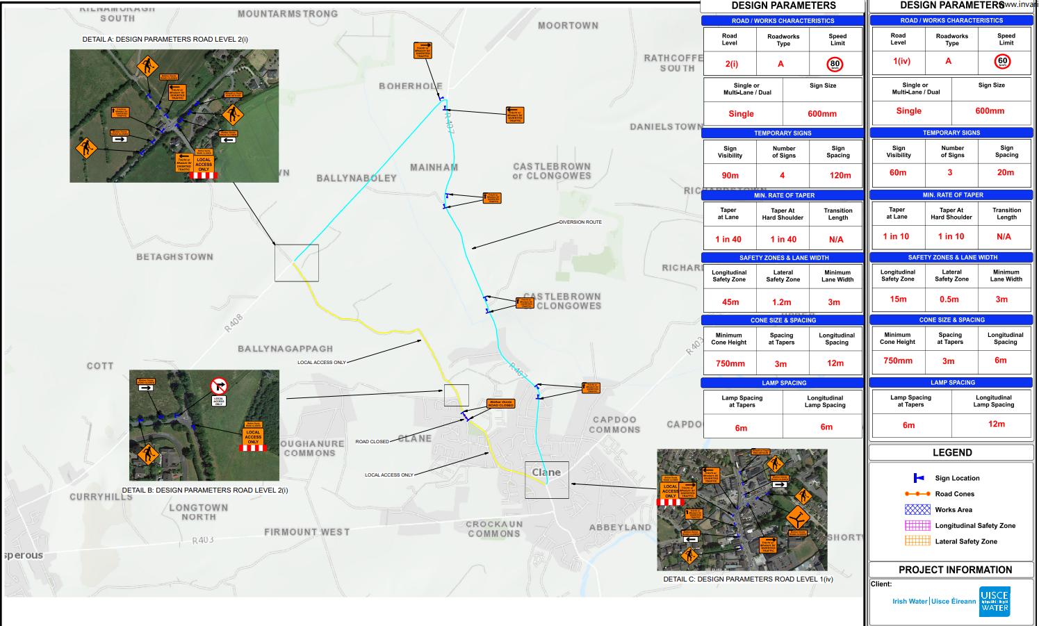 Diversionary routes will be clearly signposted, as agreed with the Council and An Garda Síochána. Emergency access and restricted local access will be maintained.